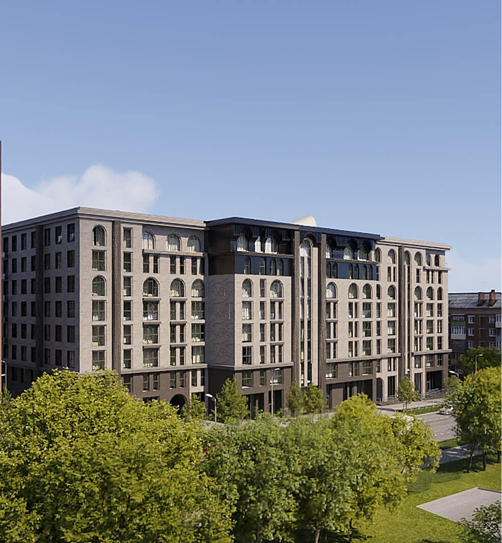 Ленинский район — это ткань времени: старинные особняки, здания советской эпохи, дореволюционные арки, модернистские вкрапления. Новый дом — не должен «ломать» этот код. Он должен разговаривать с ним