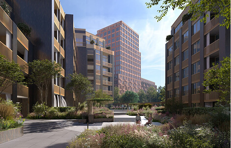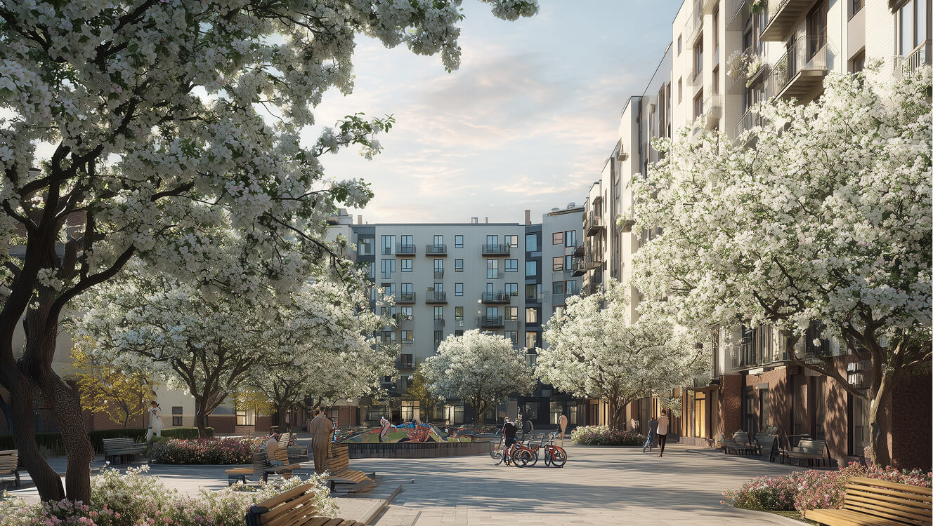 Двор в «Садах Субботина» — не просто пространство между подъездами, а место отдыха. Он станет настоящим городским садом с разноуровневым озеленением, яблонями, вишнями, сиренью и жасмином.